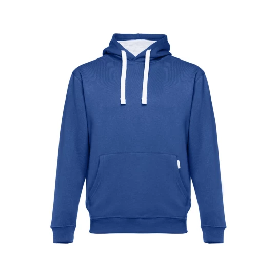 Bluza z kapturem (unisex). 50% bawełna i 50% poliester (320 g/m²), zgrzebna wewnątrz. Ściągacz 1x1 na mankietach i na dole. Kieszeń typu kangurek i kaptur ze sznurkami w kontrastującym kolorze. Rozmiary: S, M, L, XL, XXL