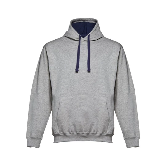 Bluza z kapturem (unisex). 50% bawełna i 50% poliester (320 g/m²), zgrzebna wewnątrz. Ściągacz 1x1 na mankietach i na dole. Kieszeń typu kangurek i kaptur ze sznurkami w kontrastującym kolorze. Rozmiary: S, M, L, XL, XXL