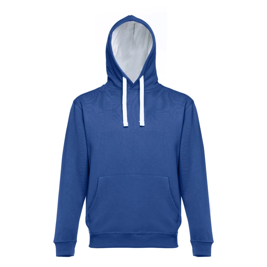 Bluza z kapturem (unisex). 50% bawełna i 50% poliester (320 g/m²), zgrzebna wewnątrz. Ściągacz 1x1 na mankietach i na dole. Kieszeń typu kangurek i kaptur ze sznurkami w kontrastującym kolorze. Rozmiary: S, M, L, XL, XXL