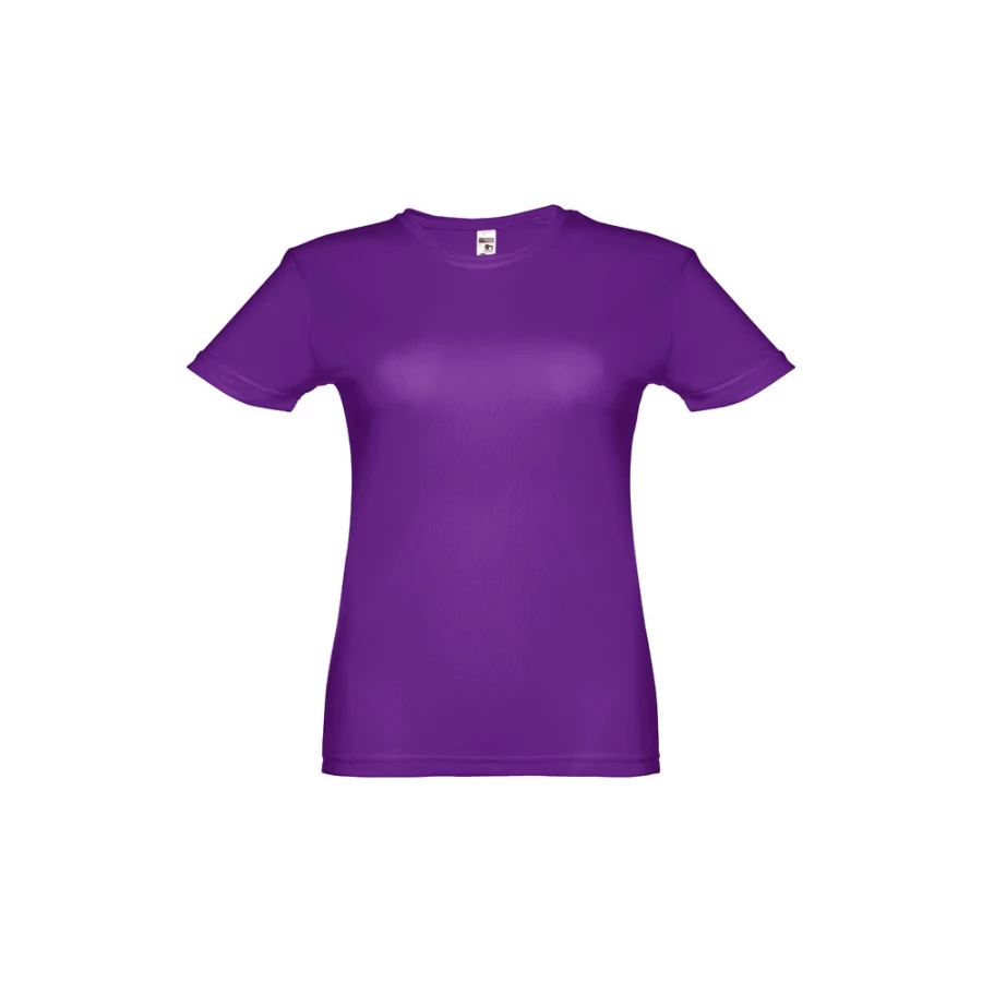 Damski sportowy t-shirt z krótkim rękawem. 100% poliester dżersej (130 g/m²). Krój regularny, z wygodnego i oddychającego materiału. Posiada taśmę wzmacniającą przy szyi. Podwójny szew na rękawach i na dole. Rozmiary: S, M, L, XL, XXL