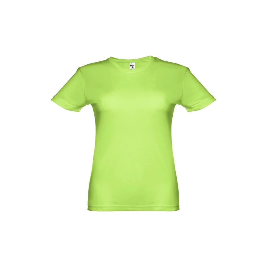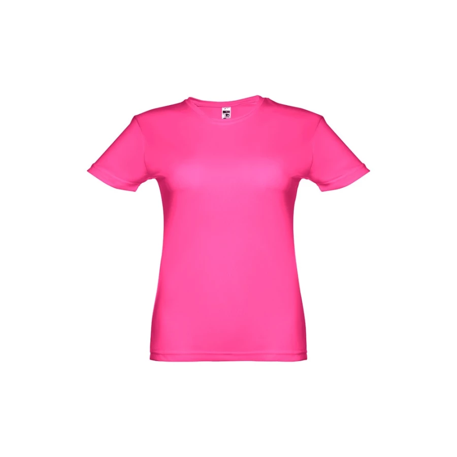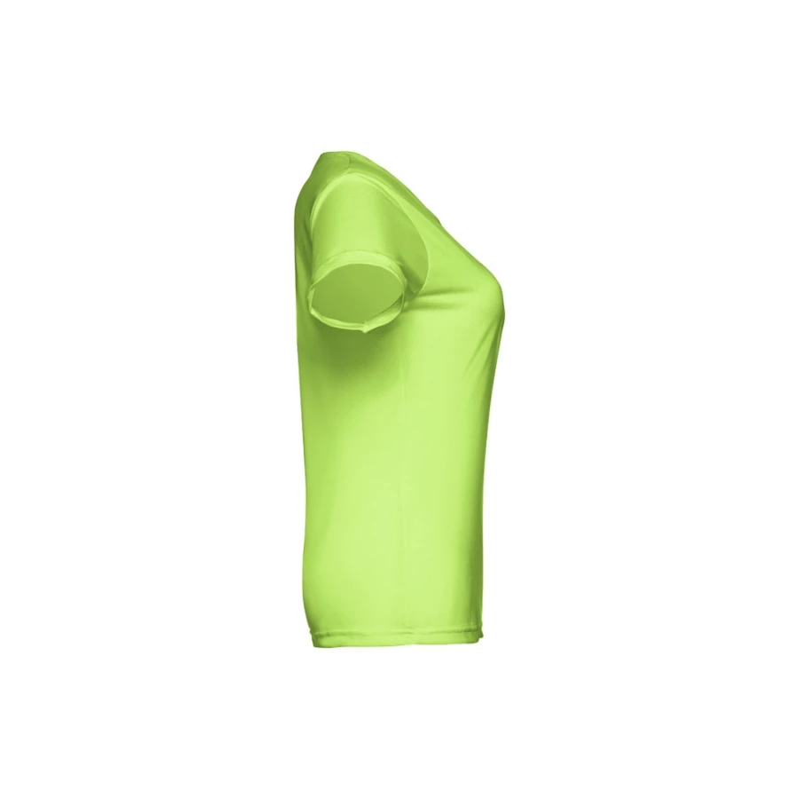 Damski sportowy t-shirt z krótkim rękawem. 100% poliester dżersej (130 g/m²). Krój regularny, z wygodnego i oddychającego materiału. Posiada taśmę wzmacniającą przy szyi. Podwójny szew na rękawach i na dole. Rozmiary: S, M, L, XL, XXL
