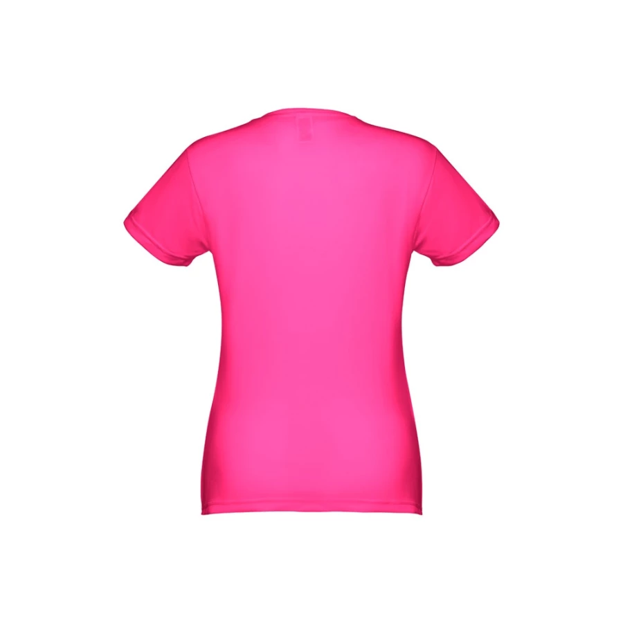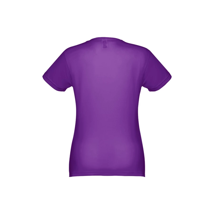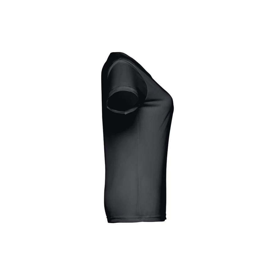 Damski sportowy t-shirt z krótkim rękawem. 100% poliester dżersej (130 g/m²). Krój regularny, z wygodnego i oddychającego materiału. Posiada taśmę wzmacniającą przy szyi. Podwójny szew na rękawach i na dole. Rozmiary: S, M, L, XL, XXL
