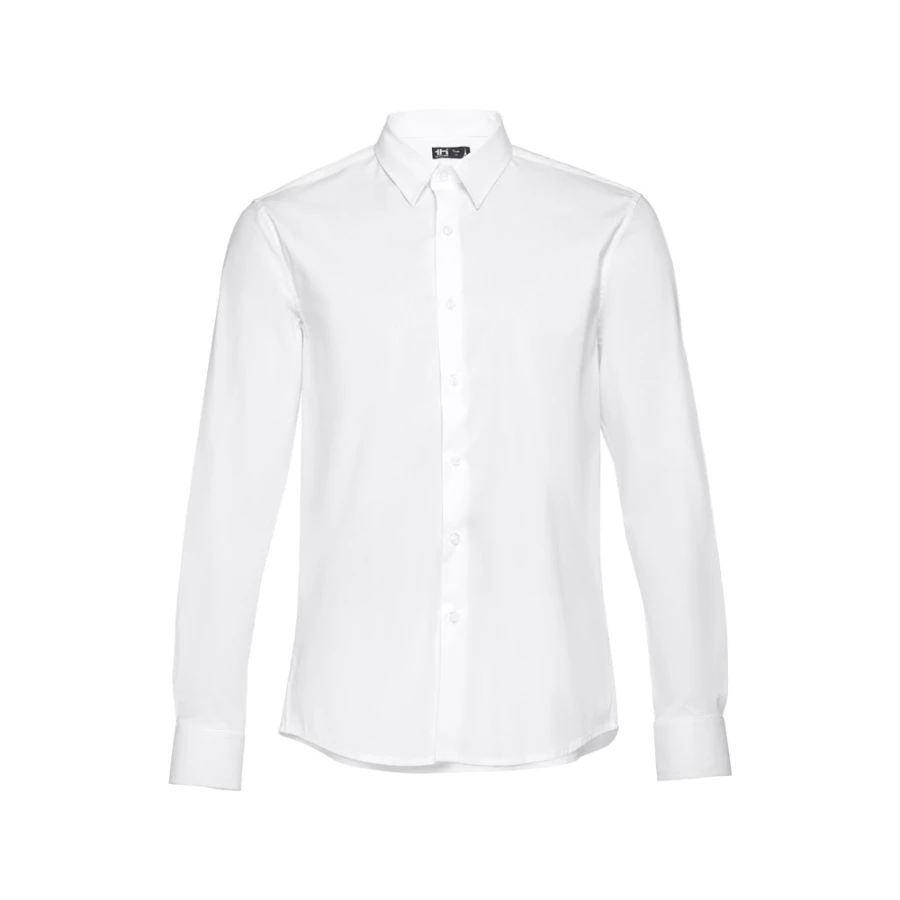 THC PARIS WH. Popelinowa koszula męska z długim rękawem. Kolor biały (30194-106-M)