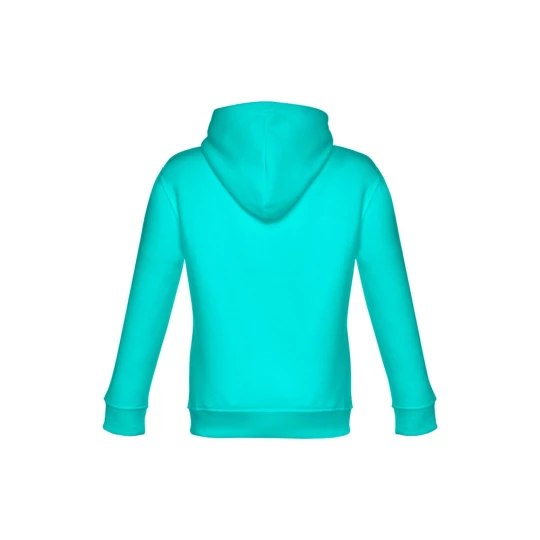 Dziecięca bluza z kapturem (unisex) z 50% bawełny i 50% poliestru (320 g/m²), zgrzebne wnętrze. Kaptur z dżersejową podszewką, spełniający normy bezpieczeństwa Unii Europejskiej. Kieszeń typu kangurek i ściągacze 1x1 w mankietach i pasie. Rozmiary: 2, 4, 6, 8, 10, 12
