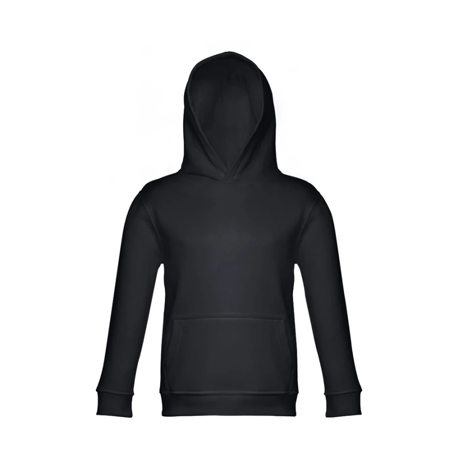 Dziecięca bluza z kapturem (unisex) z 50% bawełny i 50% poliestru (320 g/m²), zgrzebne wnętrze. Kaptur z dżersejową podszewką, spełniający normy bezpieczeństwa Unii Europejskiej. Kieszeń typu kangurek i ściągacze 1x1 w mankietach i pasie. Rozmiary: 2, 4, 6, 8, 10, 12