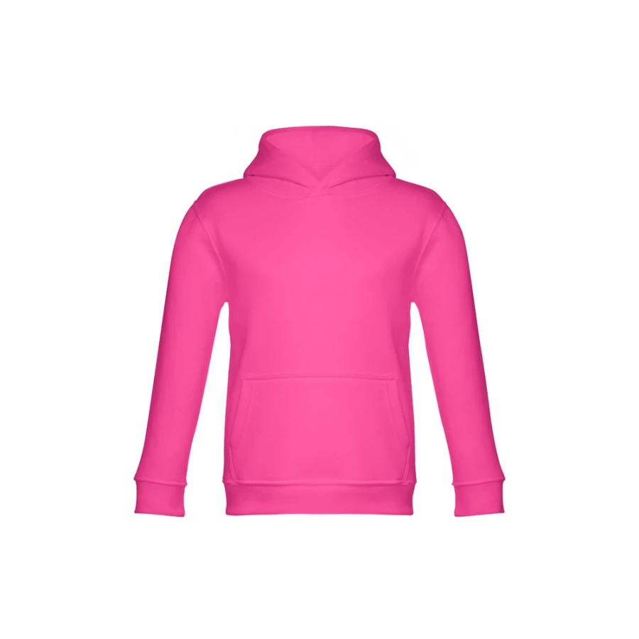 Dziecięca bluza z kapturem (unisex) z 50% bawełny i 50% poliestru (320 g/m²), zgrzebne wnętrze. Kaptur z dżersejową podszewką, spełniający normy bezpieczeństwa Unii Europejskiej. Kieszeń typu kangurek i ściągacze 1x1 w mankietach i pasie. Rozmiary: 2, 4, 6, 8, 10, 12