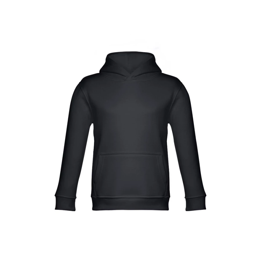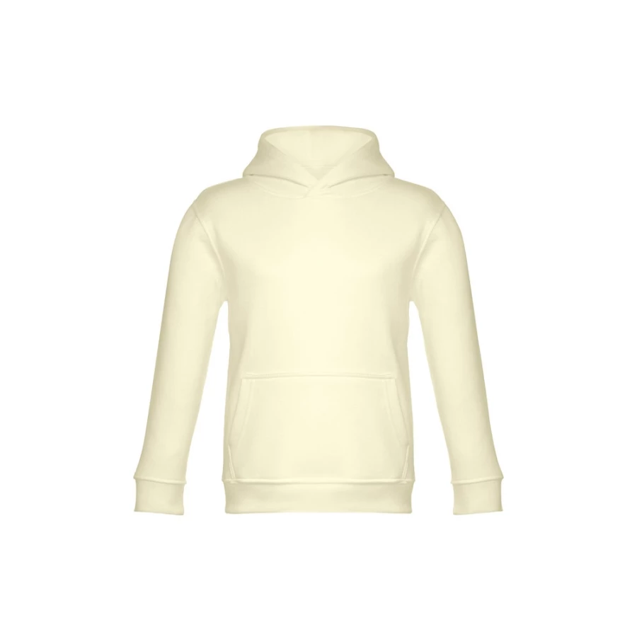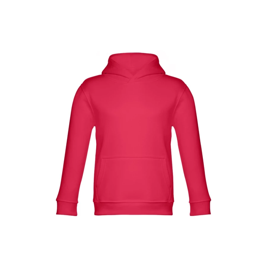 Dziecięca bluza z kapturem (unisex) z 50% bawełny i 50% poliestru (320 g/m²), zgrzebne wnętrze. Kaptur z dżersejową podszewką, spełniający normy bezpieczeństwa Unii Europejskiej. Kieszeń typu kangurek i ściągacze 1x1 w mankietach i pasie. Rozmiary: 2, 4, 6, 8, 10, 12