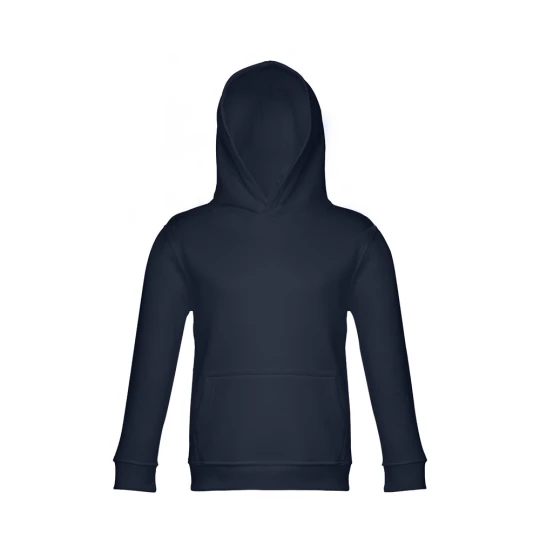 Dziecięca bluza z kapturem (unisex) z 50% bawełny i 50% poliestru (320 g/m²), zgrzebne wnętrze. Kaptur z dżersejową podszewką, spełniający normy bezpieczeństwa Unii Europejskiej. Kieszeń typu kangurek i ściągacze 1x1 w mankietach i pasie. Rozmiary: 2, 4, 6, 8, 10, 12