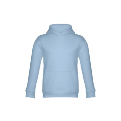 Dziecięca bluza z kapturem (unisex) z 50% bawełny i 50% poliestru (320 g/m²), zgrzebne wnętrze. Kaptur z dżersejową podszewką, spełniający normy bezpieczeństwa Unii Europejskiej. Kieszeń typu kangurek i ściągacze 1x1 w mankietach i pasie. Rozmiary: 2, 4, 6, 8, 10, 12