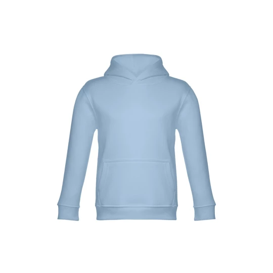 Dziecięca bluza z kapturem (unisex) z 50% bawełny i 50% poliestru (320 g/m²), zgrzebne wnętrze. Kaptur z dżersejową podszewką, spełniający normy bezpieczeństwa Unii Europejskiej. Kieszeń typu kangurek i ściągacze 1x1 w mankietach i pasie. Rozmiary: 2, 4, 6, 8, 10, 12