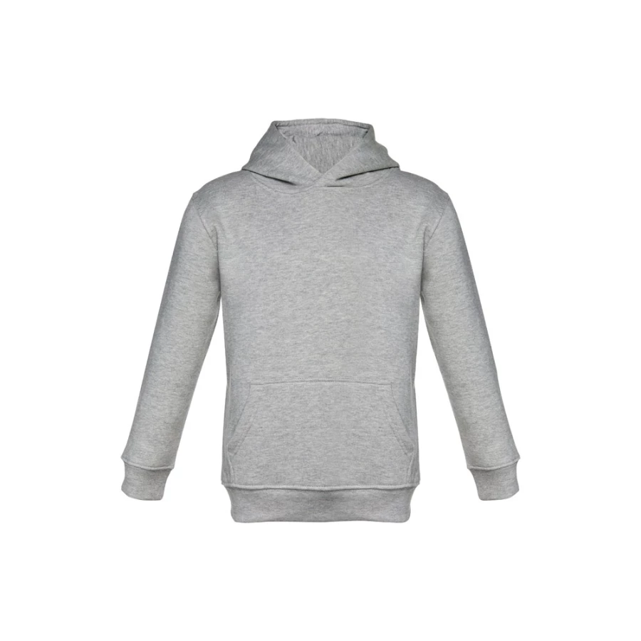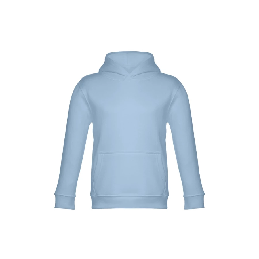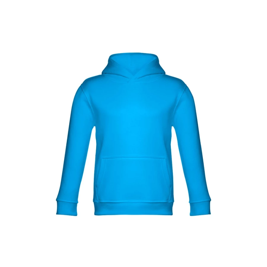 Dziecięca bluza z kapturem (unisex) z 50% bawełny i 50% poliestru (320 g/m²), zgrzebne wnętrze. Kaptur z dżersejową podszewką, spełniający normy bezpieczeństwa Unii Europejskiej. Kieszeń typu kangurek i ściągacze 1x1 w mankietach i pasie. Rozmiary: 2, 4, 6, 8, 10, 12
