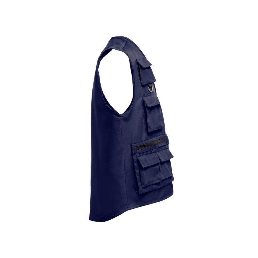 Poliester (65%) i bawełna (35%) kamizelka z wieloma kieszeniami (200 g/m²) z impregnacją hydrofobową. Odpowiednia dla reporterów i innych zawodów terenowych. Rozmiary: 3XL