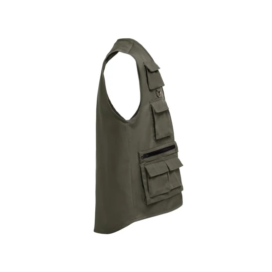 Poliester (65%) i bawełna (35%) kamizelka z wieloma kieszeniami (200 g/m²) z impregnacją hydrofobową. Odpowiednia dla reporterów i innych zawodów terenowych. Rozmiary: S, M, L, XL, XXL