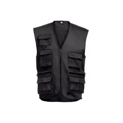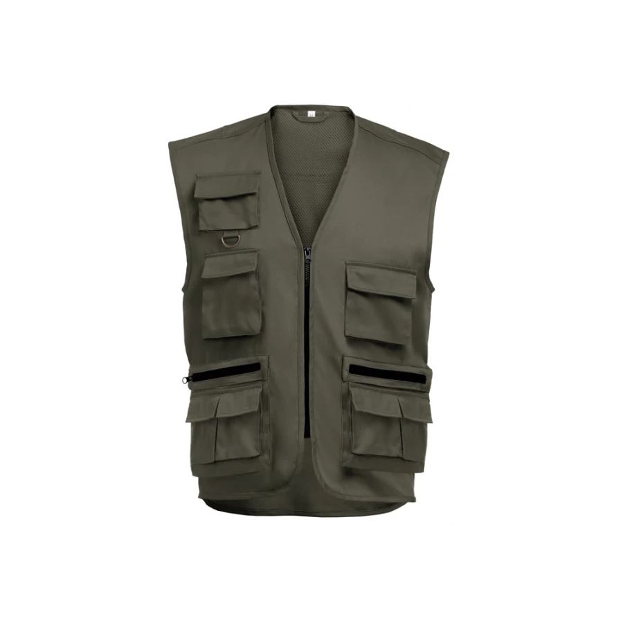 Poliester (65%) i bawełna (35%) kamizelka z wieloma kieszeniami (200 g/m²) z impregnacją hydrofobową. Odpowiednia dla reporterów i innych zawodów terenowych. Rozmiary: S, M, L, XL, XXL