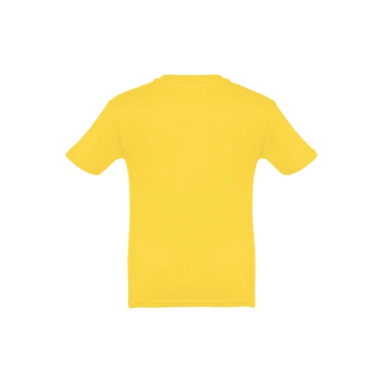 T-shirt dziecięcy (unisex) ze 100% bawełnianego dżerseju zgrzebnego (150 g/m²). Posiada 1x1 prążkowany kołnierzyk ze wzmacniającą tasiemką dżersejową. Zszywany po bokach, z podwójnym ściegiem na rękawach i na dole. Rozmiary: 2, 4, 6, 8, 10, 12