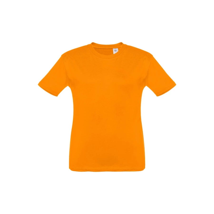 T-shirt dziecięcy (unisex) ze 100% bawełnianego dżerseju zgrzebnego (150 g/m²). Posiada 1x1 prążkowany kołnierzyk ze wzmacniającą tasiemką dżersejową. Zszywany po bokach, z podwójnym ściegiem na rękawach i na dole. Rozmiary: 2, 4, 6, 8, 10, 12