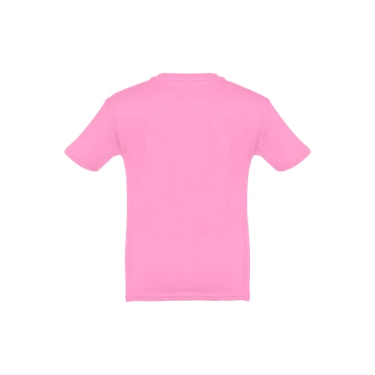 T-shirt dziecięcy (unisex) ze 100% bawełnianego dżerseju zgrzebnego (150 g/m²). Posiada 1x1 prążkowany kołnierzyk ze wzmacniającą tasiemką dżersejową. Zszywany po bokach, z podwójnym ściegiem na rękawach i na dole. Rozmiary: 2, 4, 6, 8, 10, 12