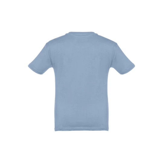 T-shirt dziecięcy (unisex) ze 100% bawełnianego dżerseju zgrzebnego (150 g/m²). Posiada 1x1 prążkowany kołnierzyk ze wzmacniającą tasiemką dżersejową. Zszywany po bokach, z podwójnym ściegiem na rękawach i na dole. Rozmiary: 2, 4, 6, 8, 10, 12