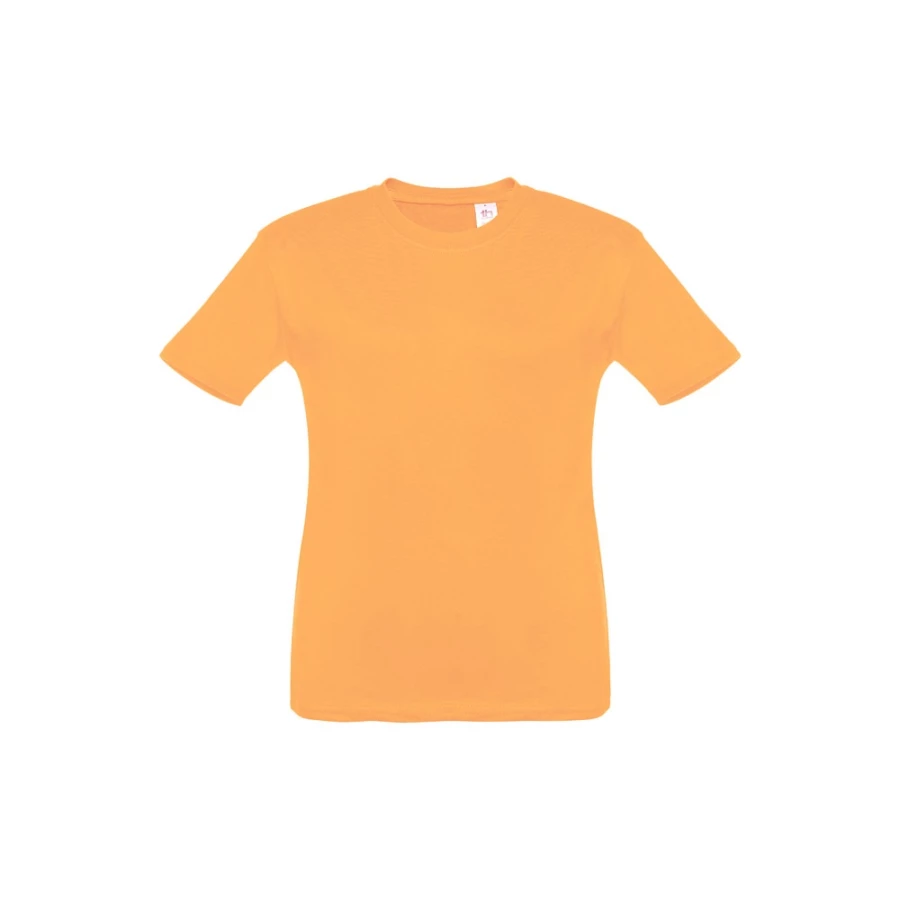 T-shirt dziecięcy (unisex) ze 100% bawełnianego dżerseju zgrzebnego (150 g/m²). Posiada 1x1 prążkowany kołnierzyk ze wzmacniającą tasiemką dżersejową. Zszywany po bokach, z podwójnym ściegiem na rękawach i na dole. Rozmiary: 2, 4, 6, 8, 10, 12