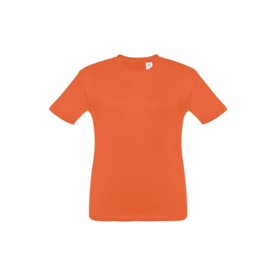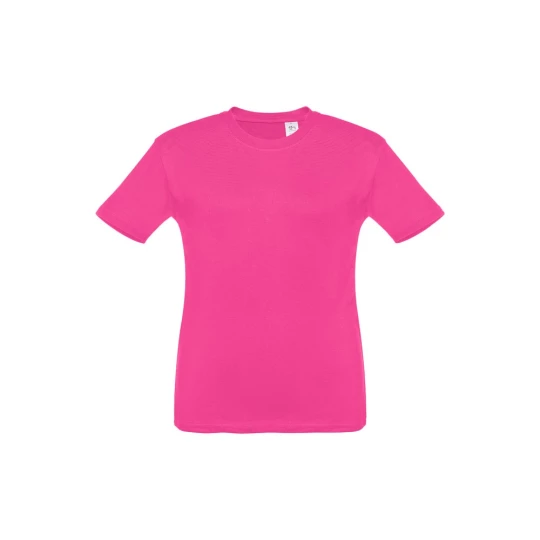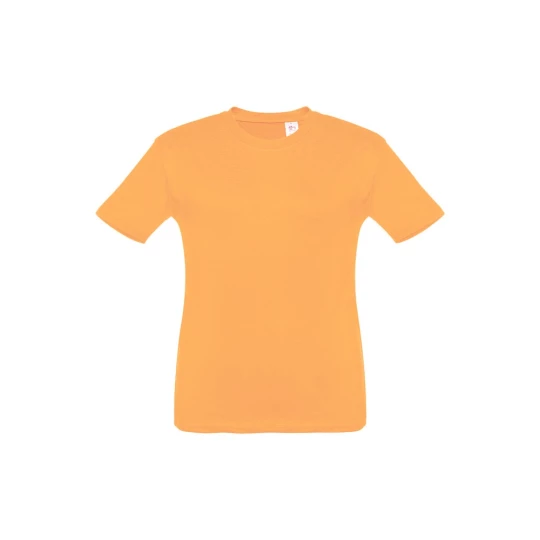 T-shirt dziecięcy (unisex) ze 100% bawełnianego dżerseju zgrzebnego (150 g/m²). Posiada 1x1 prążkowany kołnierzyk ze wzmacniającą tasiemką dżersejową. Zszywany po bokach, z podwójnym ściegiem na rękawach i na dole. Rozmiary: 2, 4, 6, 8, 10, 12