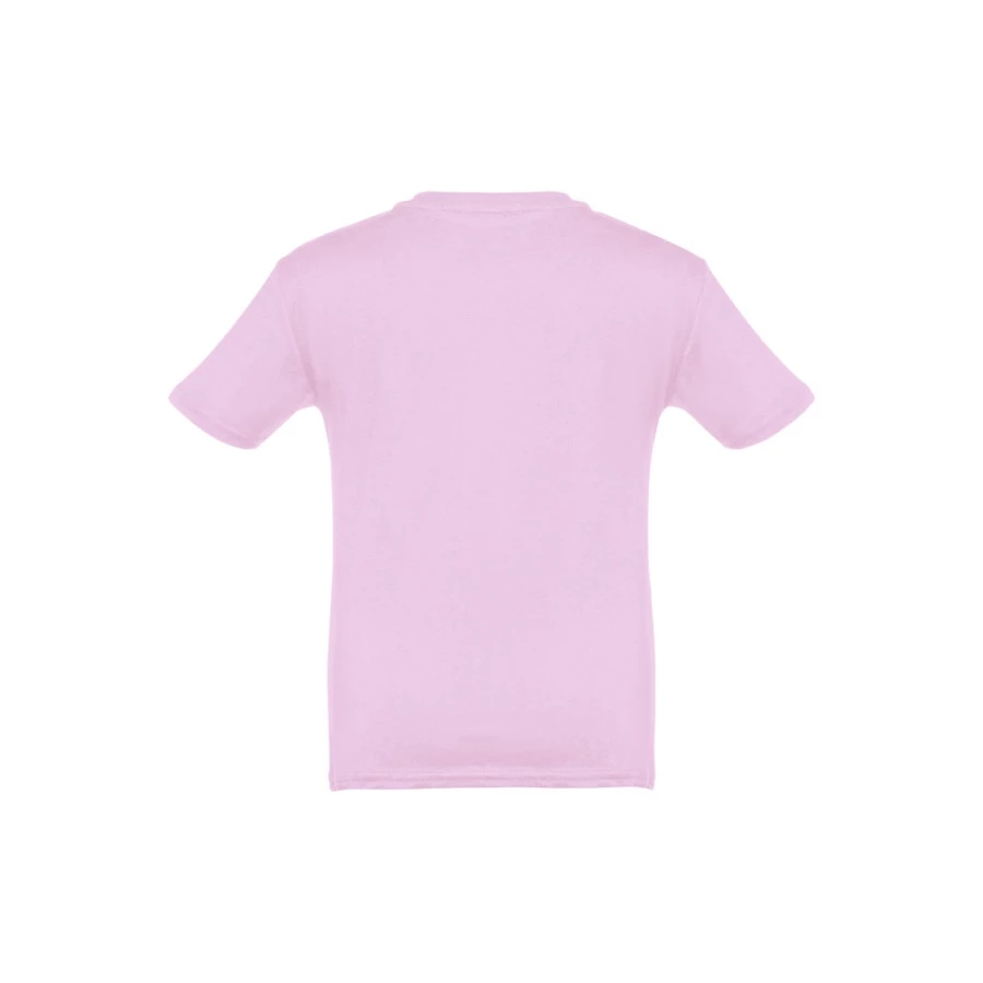 T-shirt dziecięcy (unisex) ze 100% bawełnianego dżerseju zgrzebnego (150 g/m²). Posiada 1x1 prążkowany kołnierzyk ze wzmacniającą tasiemką dżersejową. Zszywany po bokach, z podwójnym ściegiem na rękawach i na dole. Rozmiary: 2, 4, 6, 8, 10, 12