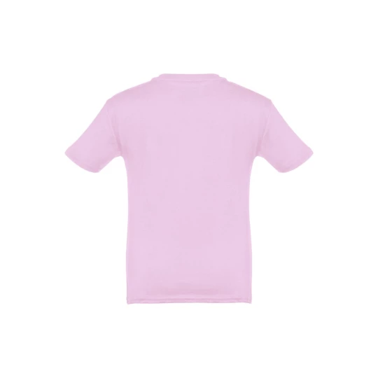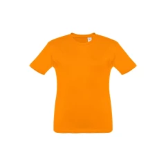 T-shirt dziecięcy (unisex) ze 100% bawełnianego dżerseju zgrzebnego (150 g/m²). Posiada 1x1 prążkowany kołnierzyk ze wzmacniającą tasiemką dżersejową. Zszywany po bokach, z podwójnym ściegiem na rękawach i na dole. Rozmiary: 2, 4, 6, 8, 10, 12