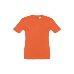 T-shirt dziecięcy (unisex) ze 100% bawełnianego dżerseju zgrzebnego (150 g/m²). Posiada 1x1 prążkowany kołnierzyk ze wzmacniającą tasiemką dżersejową. Zszywany po bokach, z podwójnym ściegiem na rękawach i na dole. Rozmiary: 2, 4, 6, 8, 10, 12
