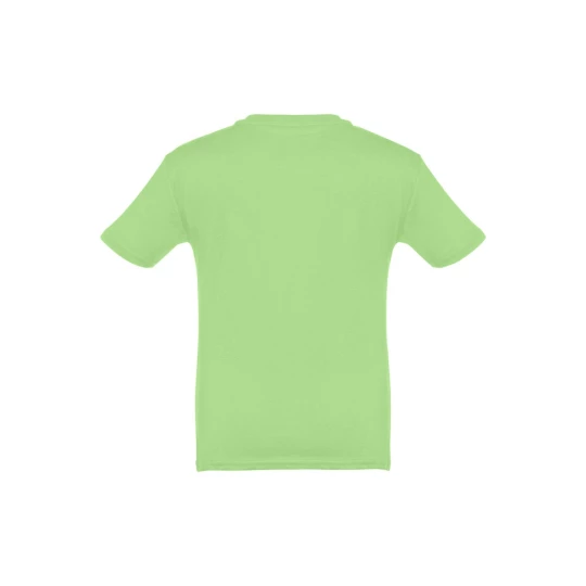 T-shirt dziecięcy (unisex) ze 100% bawełnianego dżerseju zgrzebnego (150 g/m²). Posiada 1x1 prążkowany kołnierzyk ze wzmacniającą tasiemką dżersejową. Zszywany po bokach, z podwójnym ściegiem na rękawach i na dole. Rozmiary: 2, 4, 6, 8, 10, 12