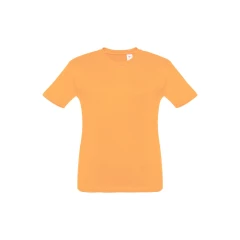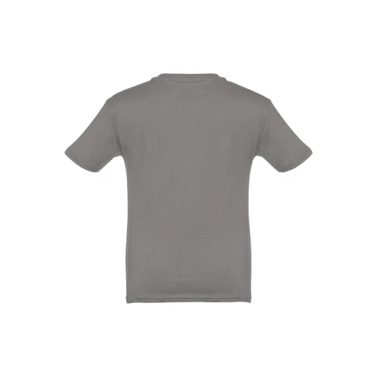 T-shirt dziecięcy (unisex) ze 100% bawełnianego dżerseju zgrzebnego (150 g/m²). Posiada 1x1 prążkowany kołnierzyk ze wzmacniającą tasiemką dżersejową. Zszywany po bokach, z podwójnym ściegiem na rękawach i na dole. Rozmiary: 2, 4, 6, 8, 10, 12