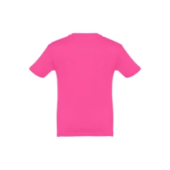 T-shirt dziecięcy (unisex) ze 100% bawełnianego dżerseju zgrzebnego (150 g/m²). Posiada 1x1 prążkowany kołnierzyk ze wzmacniającą tasiemką dżersejową. Zszywany po bokach, z podwójnym ściegiem na rękawach i na dole. Rozmiary: 2, 4, 6, 8, 10, 12