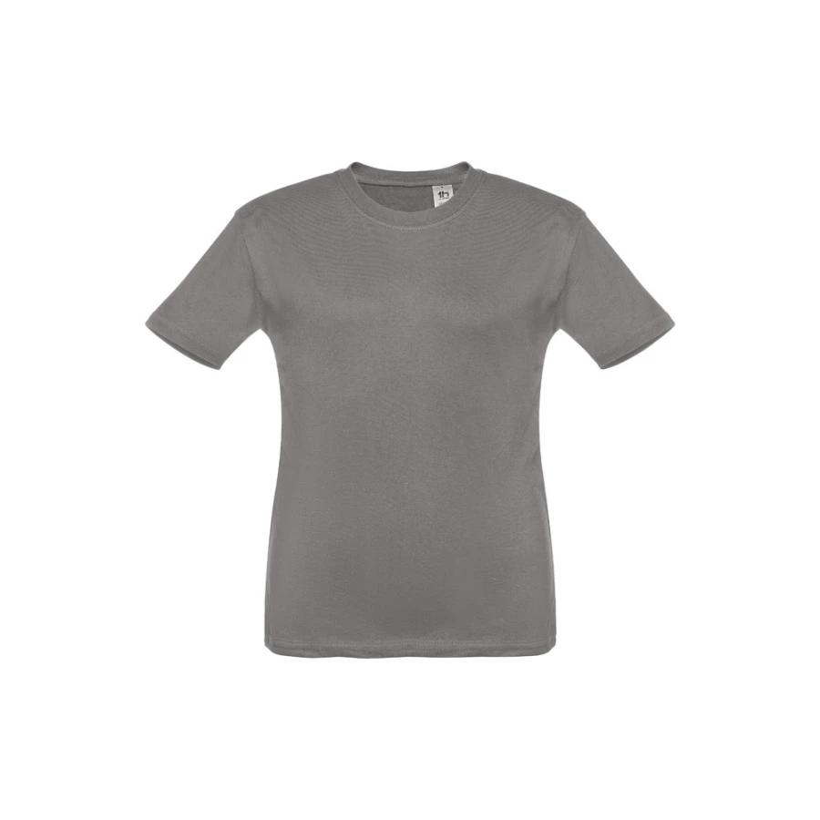 T-shirt dziecięcy (unisex) ze 100% bawełnianego dżerseju zgrzebnego (150 g/m²). Posiada 1x1 prążkowany kołnierzyk ze wzmacniającą tasiemką dżersejową. Zszywany po bokach, z podwójnym ściegiem na rękawach i na dole. Rozmiary: 2, 4, 6, 8, 10, 12