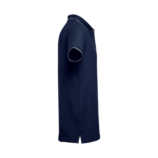 Męska dwukolorowa koszulka polo z krótkim rękawem, wykonana w 100% z bawełny zgrzebnej typu pique (210 g/m²) (kolor 183: 85% bawełna/15% wiskoza). Dwukolorowy kontrast na kołnierzu, rękawie i plisie. Posiada prążkowane mankiety i kołnierz. Wzmocniona plisa z 3 kontrastującymi kolorami guzików (dodatkowy guzik umieszczony w wewnętrznym szwie bocznym). Dopasowana talia i małe boczne rozcięcia na dole. Rozmiary: S, M, L, XL, XXL