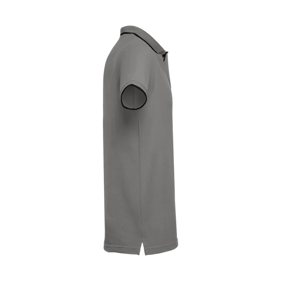 Męska dwukolorowa koszulka polo z krótkim rękawem, wykonana w 100% z bawełny zgrzebnej typu pique (210 g/m²) (kolor 183: 85% bawełna/15% wiskoza). Dwukolorowy kontrast na kołnierzu, rękawie i plisie. Posiada prążkowane mankiety i kołnierz. Wzmocniona plisa z 3 kontrastującymi kolorami guzików (dodatkowy guzik umieszczony w wewnętrznym szwie bocznym). Dopasowana talia i małe boczne rozcięcia na dole. Rozmiary: S, M, L, XL, XXL