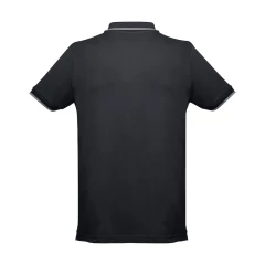 Męska dwukolorowa koszulka polo z krótkim rękawem, wykonana w 100% z bawełny zgrzebnej typu pique (210 g/m²) (kolor 183: 85% bawełna/15% wiskoza). Dwukolorowy kontrast na kołnierzu, rękawie i plisie. Posiada prążkowane mankiety i kołnierz. Wzmocniona plisa z 3 kontrastującymi kolorami guzików (dodatkowy guzik umieszczony w wewnętrznym szwie bocznym). Dopasowana talia i małe boczne rozcięcia na dole. Rozmiary: S, M, L, XL, XXL