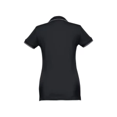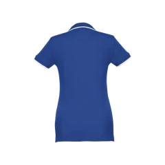 Damska dwukolorowa koszulka polo z krótkim rękawem, wykonana w 100% z bawełny zgrzebnej typu pique (210 g/m²) (kolor 183: 85% bawełna/15% wiskoza). Dwukolorowy kontrast na kołnierzu, rękawie i plisie. Posiada prążkowane mankiety i kołnierz. Wzmocniona plisa z 3 kontrastującymi kolorami guzików (dodatkowy guzik umieszczony w wewnętrznym szwie bocznym). Dopasowana talia i małe boczne rozcięcia na dole. Rozmiary: S, M, L, XL, XXL
