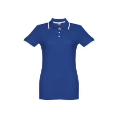 Damska dwukolorowa koszulka polo z krótkim rękawem, wykonana w 100% z bawełny zgrzebnej typu pique (210 g/m²) (kolor 183: 85% bawełna/15% wiskoza). Dwukolorowy kontrast na kołnierzu, rękawie i plisie. Posiada prążkowane mankiety i kołnierz. Wzmocniona plisa z 3 kontrastującymi kolorami guzików (dodatkowy guzik umieszczony w wewnętrznym szwie bocznym). Dopasowana talia i małe boczne rozcięcia na dole. Rozmiary: S, M, L, XL, XXL