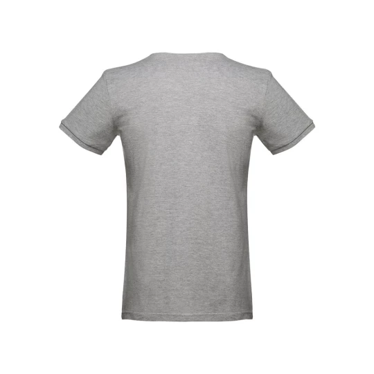 Męski t-shirt 100% bawełna (195 g/m²) (kolor 183: 85% bawełny, 15% wiskozy). Stylowy i modny krój z cienkim kołnierzykiem oraz ściągaczami 1x1. Wzmocniony kołnierz, bez metki. Skrojony i zszyty, o regularnym kroju. Rozmiary: S, M, L, XL, XXL