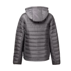 Damska kurtka z kapturem wykonana w 100% z nylonu ripstop z recyklingu (350 g/m²), wewnątrz podszyta w 100% nylonową taftą z recyklingu (350 g/m²) dla większego komfortu noszenia. Kaptur jest wyściełany i ma różne funkcje: elastyczną taśmę, dwa guziki zatrzaskowe i zamek błyskawiczny umożliwiający jego odpinanie. Z przodu zamek błyskawiczny YKK® - marki, która korzysta z nowoczesnego sprzętu o wysokiej jakości - i ściągacz. Posiada dwie przednie kieszenie z zamkami błyskawicznymi i ściągaczami oraz dwie wewnętrzne kieszenie z samoprzylepnymi zamkami błyskawicznymi. W dolnej części pleców znajduje się zapinany na zamek dostęp ułatwiający personalizację. Rozmiary: XS, S, M, L, XL, XXL