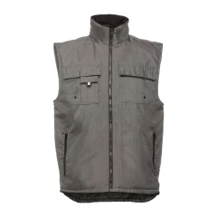 Wyściełana męska kamizelka robocza ze 100% poliestru oxford z powłoką akrylową (170 g/m²), podszewka w 100% z poliestru z tafty (65 g/m²). Kołnierz podszyty polarem i elastyczne boki dla lepszego dopasowania. Zawiera 6 kieszeni: 5 przednich, w tym 2 z wewnętrznym zamkiem, 1 na telefon komórkowy i 1 wewnętrzną. Zapięcie na zamek z tyłu dla łatwej personalizacji. Rozmiary: S, M, L, XL, XXL, 3XL