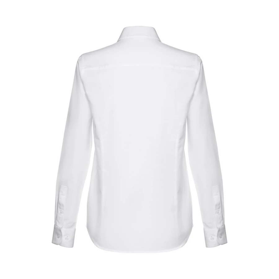 Damska koszula oxford z długimi rękawami, wykonana w 70% z bawełny i 30% z poliestru (130 g/m²). Ma regulowane mankiety z 2 guzikami i zakładką. Dopasowana koszula z 2 zaszewkami z przodu i z tyłu. Zapinana na 7 guzików w kolorze perłowym. Rozmiary: S, M, L, XL, XXL