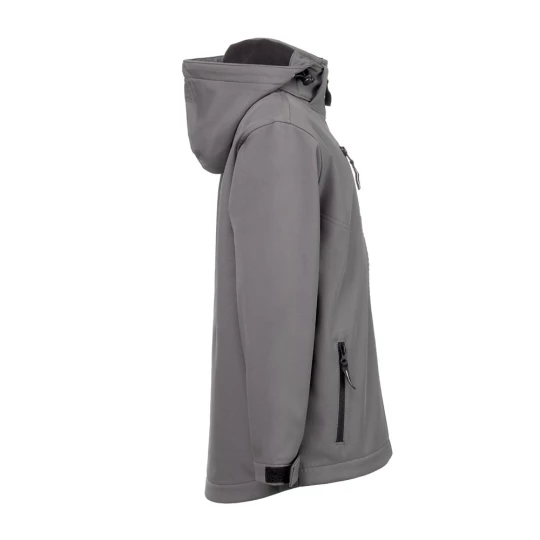 Kurtka dziecięca wykonana w 96% z poliestru softshell pochodzącego z recyklingu i w 4% z elastanu (280 g/m²), z dwoma sznurkami i wodoodporną podszewką. Kurtka z polarową podszewką (100% poliester z recyklingu) z 2 przednimi kieszeniami i ukośną kieszenią na piersi, obie zapinane na zamek. Odpinany i regulowany kaptur ze sznurkiem ściągającym i samoprzylepnym paskiem na suwak do dopasowania do kołnierza. Zapięcie z przodu na zamek błyskawiczny YKK® - marki, która korzysta z nowoczesnego sprzętu i wysokiej jakości kontroli. Regulowane ściągacze rękawów z samoprzylepnym paskiem. Zaokrąglona dolna część pleców. Rozmiary: 4, 6, 8, 10, 12