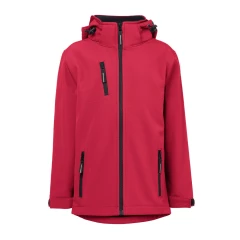 Kurtka dziecięca wykonana w 96% z poliestru softshell pochodzącego z recyklingu i w 4% z elastanu (280 g/m²), z dwoma sznurkami i wodoodporną podszewką. Kurtka z polarową podszewką (100% poliester z recyklingu) z 2 przednimi kieszeniami i ukośną kieszenią na piersi, obie zapinane na zamek. Odpinany i regulowany kaptur ze sznurkiem ściągającym i samoprzylepnym paskiem na suwak do dopasowania do kołnierza. Zapięcie z przodu na zamek błyskawiczny YKK® - marki, która korzysta z nowoczesnego sprzętu i wysokiej jakości kontroli. Regulowane ściągacze rękawów z samoprzylepnym paskiem. Zaokrąglona dolna część pleców. Rozmiary: 4, 6, 8, 10, 12