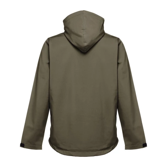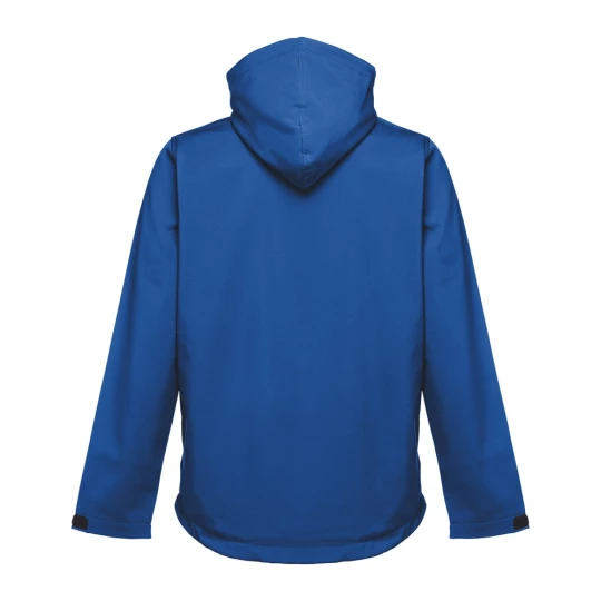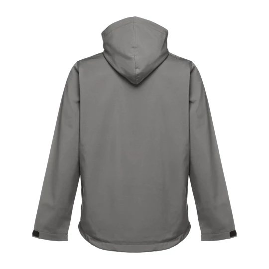Męska kurtka softshell z 96% poliestru i 4% elastanu (280 g/m²), z dwiema warstwami, odpinanym kapturem i wodoodporną powłoką. Kurtka z polarową podszewką z 2 przednimi kieszeniami i ukośną kieszenią na piersi, wszystkie z zamkami. Regulowane mankiety o przylegającym zapięciu. Odpinany kaptur ze sznurkiem i paskiem o przylegającym zapięciu do mocowania przy kołnierzu. Kurtka ma zaokrgąglony dolny brzeg. Rozmiary: S, M, L, XL, XXL