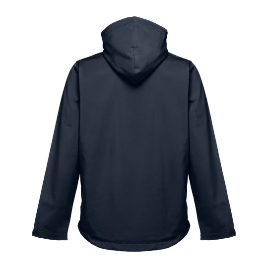 Męska kurtka softshell z 96% poliestru i 4% elastanu (280 g/m²), z dwiema warstwami, odpinanym kapturem i wodoodporną powłoką. Kurtka z polarową podszewką z 2 przednimi kieszeniami i ukośną kieszenią na piersi, wszystkie z zamkami. Regulowane mankiety o przylegającym zapięciu. Odpinany kaptur ze sznurkiem i paskiem o przylegającym zapięciu do mocowania przy kołnierzu. Kurtka ma zaokrgąglony dolny brzeg. Rozmiary: S, M, L, XL, XXL