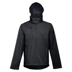 Męska kurtka softshell z 96% poliestru i 4% elastanu (280 g/m²), z dwiema warstwami, odpinanym kapturem i wodoodporną powłoką. Kurtka z polarową podszewką z 2 przednimi kieszeniami i ukośną kieszenią na piersi, wszystkie z zamkami. Regulowane mankiety o przylegającym zapięciu. Odpinany kaptur ze sznurkiem i paskiem o przylegającym zapięciu do mocowania przy kołnierzu. Kurtka ma zaokrgąglony dolny brzeg. Rozmiary: S, M, L, XL, XXL