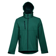 Męska kurtka softshell z 96% poliestru i 4% elastanu (280 g/m²), z dwiema warstwami, odpinanym kapturem i wodoodporną powłoką. Kurtka z polarową podszewką z 2 przednimi kieszeniami i ukośną kieszenią na piersi, wszystkie z zamkami. Regulowane mankiety o przylegającym zapięciu. Odpinany kaptur ze sznurkiem i paskiem o przylegającym zapięciu do mocowania przy kołnierzu. Kurtka ma zaokrgąglony dolny brzeg. Rozmiary: S, M, L, XL, XXL