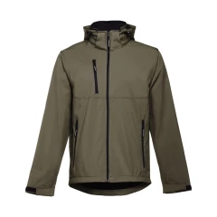 Męska kurtka softshell z 96% poliestru i 4% elastanu (280 g/m²), z dwiema warstwami, odpinanym kapturem i wodoodporną powłoką. Kurtka z polarową podszewką z 2 przednimi kieszeniami i ukośną kieszenią na piersi, wszystkie z zamkami. Regulowane mankiety o przylegającym zapięciu. Odpinany kaptur ze sznurkiem i paskiem o przylegającym zapięciu do mocowania przy kołnierzu. Kurtka ma zaokrgąglony dolny brzeg. Rozmiary: S, M, L, XL, XXL