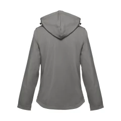 Damska kamizelka typu softshell z 96% poliestru i 4% elastanu (280 g/m²), z dwiema warstwami, odpinanym kapturem i wodoodporną powłoką. Kurtka z podszewką z 2 przednimi kieszeniami i ukośną kieszenią na piersi, wszystkie z zamkami. Regulowane mankiety o przylegającym zapięciu. Odpinany kaptur ze sznurkiem i paskiem o przylegającym zapięciu do mocowania przy kołnierzu. Kurtka ma zaokrąglony dolny brzeg. Rozmiary: S, M, L, XL, XXL