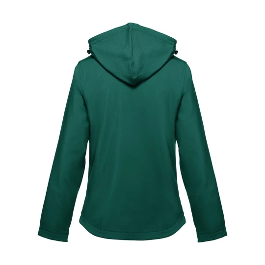Damska kamizelka typu softshell z 96% poliestru i 4% elastanu (280 g/m²), z dwiema warstwami, odpinanym kapturem i wodoodporną powłoką. Kurtka z podszewką z 2 przednimi kieszeniami i ukośną kieszenią na piersi, wszystkie z zamkami. Regulowane mankiety o przylegającym zapięciu. Odpinany kaptur ze sznurkiem i paskiem o przylegającym zapięciu do mocowania przy kołnierzu. Kurtka ma zaokrąglony dolny brzeg. Rozmiary: S, M, L, XL, XXL