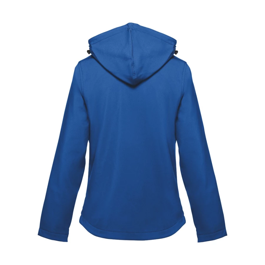 Damska kamizelka typu softshell z 96% poliestru i 4% elastanu (280 g/m²), z dwiema warstwami, odpinanym kapturem i wodoodporną powłoką. Kurtka z podszewką z 2 przednimi kieszeniami i ukośną kieszenią na piersi, wszystkie z zamkami. Regulowane mankiety o przylegającym zapięciu. Odpinany kaptur ze sznurkiem i paskiem o przylegającym zapięciu do mocowania przy kołnierzu. Kurtka ma zaokrąglony dolny brzeg. Rozmiary: S, M, L, XL, XXL